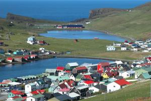 從托爾斯港出發(fā),沿著蜿蜒的海岸線行駛,不久便會(huì)抵達(dá)埃伊村(Eiei)。在這里,被譽(yù)為"世界最美球場"的埃伊迪體育場靜立在懸崖邊緣,如同一個(gè)勇敢的宣言,向浩瀚的北大西洋展示著人類的足球夢想。