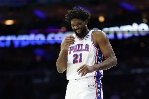 上半場,76人球星恩比德表現不佳,打了10分鐘6投僅1中,三分2中0、罰球2中2拿到4分3籃板,正負值-1。