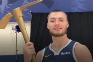 體育資訊9月30日訊 掘金官方分享新賽季定妝照拍攝花絮,布勞恩手持鐵鎬出鏡。