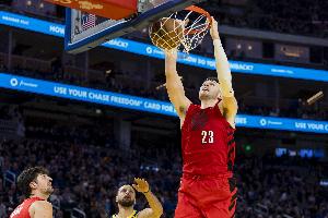 本賽季,克林根的三分球命中率從28.6%提升到了33.3%。更重要的是,他的三分出手次數從每場0.7次激增到3.0次??肆指粌H增加了三分出手次數,而且命中率也在提高。作為一名中鋒,他具備了真正的三分威脅,為波特蘭的進攻提供了寶貴的場上空間。賽季前四場比賽克林根場均25.4分鐘內拿到11.8分9.5板2助1斷1.3帽,前場板為4.8個。