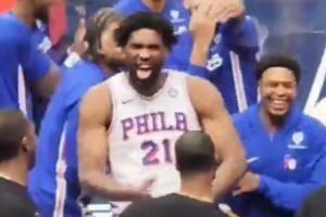 本場比賽,喬爾-恩比德出戰23分鐘砍下25分7板5助,但末節僅出戰4分鐘便下場,隨后他在板凳上看著隊友扳平了9分的分差拖進加時并最終取勝!