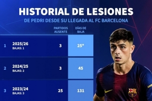 體育資訊10月30日訊 巴薩中場佩德里左側大腿遠端股二頭肌撕裂,德國轉會市場更新社媒動態,盤點佩德里加盟巴薩以來每個賽季的傷病情況。