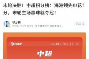 體育資訊10月31日訊 上賽季中超第29輪結束,海港領先申花1分,兩隊末輪決勝。