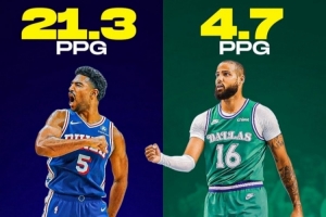 格萊姆斯在76人目前是場均21.3分,而馬丁在獨行俠則是18場共得85分,場均4.7分。