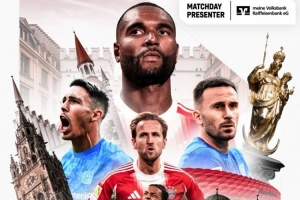 拜仁官方社媒發布了賽前海報,凱恩、奧利塞、若納坦-塔出鏡。配文:“我們的城市,我們的球迷,我們的球場。我們期待今晚主場對陣勒沃庫森的比賽。”