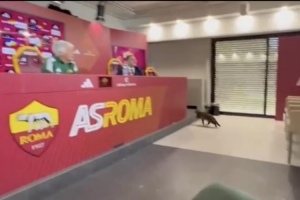 《羅馬體育報》曬出的視頻顯示,當加斯佩里尼回答記者提問時,一只貓闖進了新聞發(fā)布廳。這只貓咪恰好就在加斯佩里尼發(fā)言的講臺附近開始喵喵叫,教練關(guān)于本賽季陣容可能調(diào)整的論述被貓叫聲打斷。