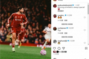 索博斯洛伊當選利物浦隊內最佳球員,他在社交媒體上慶祝勝利:“在安菲爾德取勝總是很特別。”