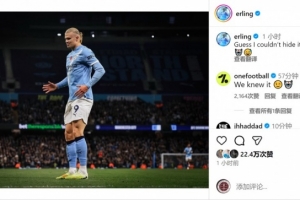 哈蘭德社媒曬出進球后機器人舞蹈慶祝動作的照片,調侃配文:“看來是藏不住了????”