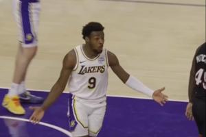 GIF-布朗尼被吹防守犯規,很不解啊!