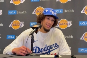 昨天洛杉磯道奇奪冠,完成衛冕。海斯今天賽后穿了一件道奇的球迷參加采訪。