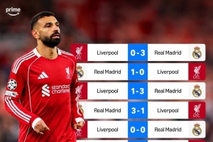 據媒體統計,近9次對陣皇馬,利物浦僅取勝1場,具體戰績1勝1平7負,打進6球丟17球。