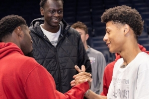 在本場(chǎng)比賽賽前,他大學(xué)隊(duì)友們都來(lái)到了雷霆主場(chǎng)為他加油。費(fèi)爾斯大學(xué)效力于俄克拉荷馬大學(xué),雖然大學(xué)和雷霆隊(duì)不是在一個(gè)城市,但距離非常近,俄城也算是費(fèi)爾斯的半個(gè)主場(chǎng)。