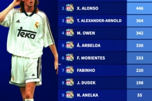 體育資訊11月5日訊 作為歐洲足壇兩大豪門,利物浦和皇馬曾吸引諸多球星效力。德國轉會市場盤點了在兩隊均有效力的球員總出場次數排行,麥克馬納曼為兩隊共出場522次居首,皇馬主帥阿隆索則以446場位居次席。