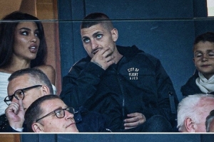 法甲官方社媒曬出照片,維拉蒂回到王子公園球場,現場觀看老東家巴黎的這場比賽。