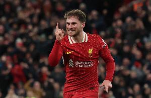 體育資訊11月5日訊 歐冠聯(lián)賽階段第4輪比賽,麥卡利斯特頭球破門,利物浦1-0領先皇馬。