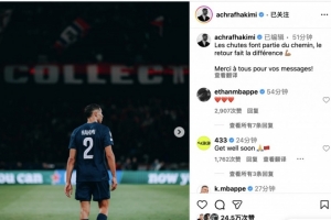 上一篇: 記者:阿什拉夫沒有骨折診斷為嚴重扭傷 登貝萊小腿損傷