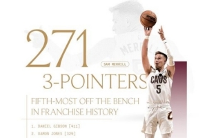 體育資訊11月8日訊 騎士官方發布紀錄,梅里爾以替補身份命中率271記三分,超越科沃爾排名騎士隊史第五。