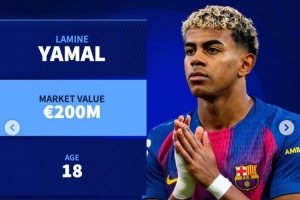 體育資訊11月9日訊 《轉會市場》統計了16歲到25歲的各年齡最高身價情況,18歲亞馬爾2億歐居首。