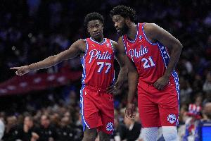 賽前76人公布了本場首發:馬克西、埃奇庫姆、烏布雷、沃特福德、恩比德。