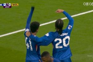 英超第11輪,切爾西3-0狼隊(duì),兩位巴西國腳佩德羅與埃斯特旺慶祝