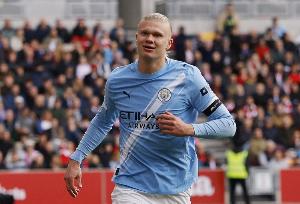 本賽季哈蘭德10場英超13球,高居射手榜第一。