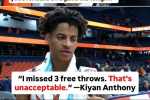 體育資訊11月10日訊 在昨天的NCAA常規賽,雪城大學以83-43狂勝德拉瓦州立大學,取得開季兩連勝。卡梅隆·安東尼之子基揚·安東尼迎來大學生涯第一次首發,他11投8中,三分4中2、罰球4中1,砍下19分3籃板4助攻1搶斷,沒有失誤。