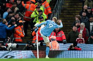 體育資訊11月10日訊 英超第11輪比賽,曼城在伊蒂哈德球場迎戰利物浦。本場比賽,主隊前鋒哈蘭德盡管在上半場錯失1粒點球,但他之后頭槌破門為球隊首開紀錄。
