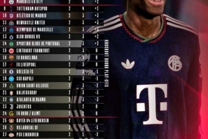 兩戰全勝的球隊包括拜仁、皇馬、巴黎、國米、阿森納、卡拉巴赫,而拜仁與皇馬同為6個凈勝球,拜仁以多進一球優勢領跑。
