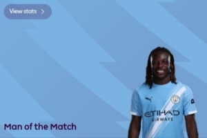 體育資訊11月10日訊 2025-26賽季英超第11輪焦點戰,曼城3-0利物浦,賽后,多庫當選英超官方評選的全場最佳球員。