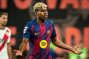 體育資訊11月10日訊 巴薩在西甲客場上半場3-2領(lǐng)先塞爾塔,亞馬爾取得進(jìn)球。