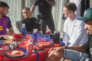 阿勞霍積極倡導這類團隊活動,拉菲尼亞也在Instagram中分享了多張聚餐照片。我們可以看到阿勞霍與隊友們以及包括理療師在內的俱樂部員工圍坐在餐桌旁,桌上鋪著藍紅相間的桌布,彰顯了對俱樂部的熱愛。