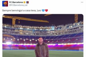 體育資訊11月10日訊 梅西ins曬照重返諾坎普兩小時后,巴薩官方發文:歡迎你隨時回家,萊奧。