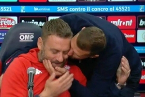 賽后德羅西舉行了新聞發(fā)布會(huì),而就在他接受采訪時(shí),佛羅倫薩前鋒哲科進(jìn)入發(fā)布會(huì)現(xiàn)場,并且抱住德羅西連親幾口,哲科還說“祝你好運(yùn)”。哲科和德羅西過去曾是羅馬隊(duì)友,兩人關(guān)系很好,盡管這次作為對(duì)手相遇,但哲科還是以這種方式和德羅西打招呼。