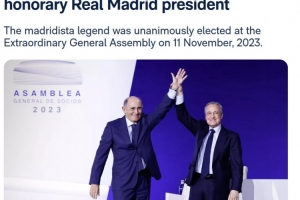 體育資訊11月11日訊 皇馬官網消息,2023年11月11日,何塞-馬丁內斯-皮里在皇家馬德里城籃球館舉行的特別全體大會上,被一致推選為俱樂部的榮譽主席。這一任命至今已有兩年。