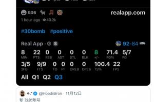 今日,體育應(yīng)用Real的官方推特賬號(hào)用今天的庫里數(shù)據(jù)截圖回?fù)袅薍oodiiBron:“‘退役吧兄弟。’”