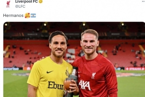 利物浦中場亞歷克西斯·麥卡利斯特和他的哥哥凱文·麥卡利斯特(圣吉羅斯后衛)都入選了本期阿根廷隊名單,利物浦官方社媒曬出麥卡兄弟的合照,配文:“兄弟。”