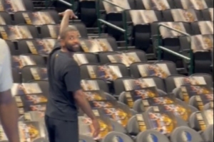 體育資訊11月15日訊 今日獨行俠官方曬出視頻,歐文在球隊訓練中精準甩進一記Logo Shot。