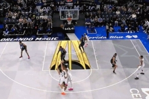 GIF-薩格斯對杰明三分犯規,疑似墊腳升級一級惡意犯規