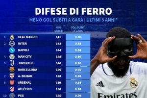 體育資訊11月15日訊 德國(guó)轉(zhuǎn)會(huì)市場(chǎng)統(tǒng)計(jì)了2020-2021賽季以來(lái)球隊(duì)在五大聯(lián)賽中的場(chǎng)均失球,并列出場(chǎng)均失球最少榜單,皇馬0.86球居首,國(guó)米、那不勒斯前三。