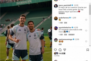 帕尼切利社媒曬出與梅西的合照,配文:“我們之中最棒的!感謝你給無數人帶來快樂,(對我來說)再也沒有比這更好的獎賞了!”