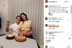 迪巴拉社媒曬出與懷孕妻子一起慶祝的合照,配文:“感謝大家的生日祝福,最棒的禮物即將到來,我已迫不及待!愛你們所有人?!?/p>