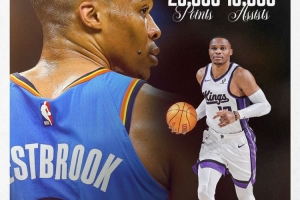 體育資訊11月16日訊 在昨天NBA杯國王VS森林狼的比賽中,威少生涯總助攻數突破10000次大關,成為繼詹姆斯之后,NBA歷史第二位生涯取得25000分和10000助攻的球員。