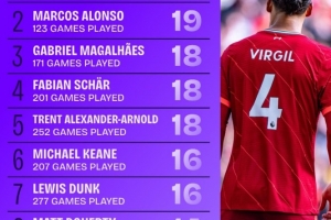 17-18賽季來英超后衛(wèi)進(jìn)球榜:范戴克21球居首,加布里埃爾18球第3