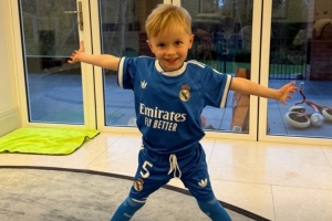 體育資訊11月19日訊 熱刺中場麥迪遜在今日通過社媒曬出自己兒子的動態,后者穿上了貝林厄姆在皇馬的5號球衣。