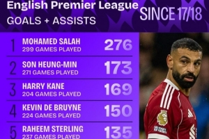 1.穆罕默德·薩拉赫,299場,276球
