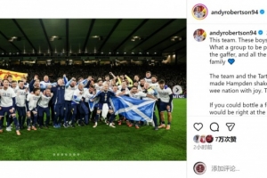 體育資訊11月20日訊 蘇格蘭隊長羅伯遜更新社媒動態,表達了直通世界杯的激動之情。