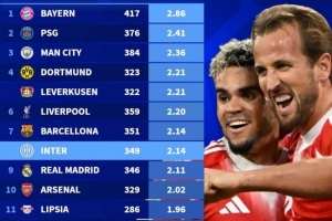 體育資訊11月20日訊 德國轉會市場統計了近5年球隊在五大聯賽中的場均進球數量,并列出榜單,拜仁2.86球居首,巴黎、曼城二三位。