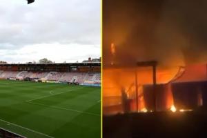 talksport寫道,由于埃克塞特城體育場發生火災,他們被迫推遲英甲聯賽比賽。球場多處區域起火,球場遭到破壞 。