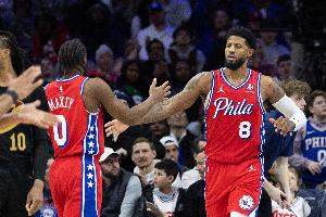 本場比賽馬克西出戰46分鐘,30投18中,三分15中6,罰球14中12砍下生涯新高的54分(此前是52),另有5籃板9助攻3搶斷3蓋帽;喬治打了24分鐘12投7中,三分7中4、罰球4中3拿到21分5籃板3助攻2搶斷。