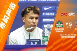 “大家下午好,明天的比賽是我們俱樂部在中超聯賽第一年的收官戰,作為一支升班馬,我們在賽季的整體表現非常不錯,我們已經確保了第八名,最后一場比賽我們還是希望能夠以勝利來結束這個賽季。當然我也知道,河南是一支強隊,之前,作為觀眾我已經兩次來到這里看河南隊的比賽,我非常喜歡這支隊伍,喜歡他們在場上踢的這種進攻式的足球。
